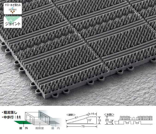 玄関マット(屋外・業務用) エバックライナーハードマット 【(コーナー) 75×75mm】(山崎産業 F-120-FC) (店舗 激安)