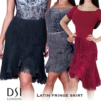 社交ダンス 練習着 スカート DSIロンドン DSI London フリンジ・ラテンスカート ラテン レディース ファッション 女性 XXS-L ブラック 黒 ヘマタイト グレー バーガンディ 赤 海外