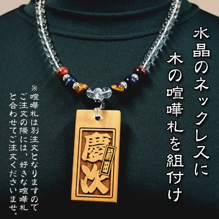 喧嘩札用の水晶ネックレス名入れ喧嘩札と天然石水晶ネックレスをセットにできます