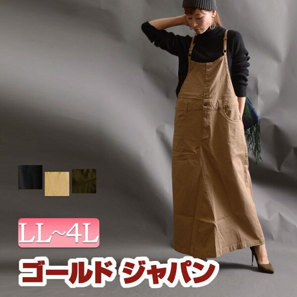サイズLL,3L,4L,実寸(cm)XL(LL)ウエスト 47cm ヒップ 54.5cm 裾幅 77cm 肩紐丈 57cm スカート丈 90cm 2XL(3L)ウエスト 50cm ヒップ 57.5cm 裾幅 80cm 肩紐丈 58cm スカート丈 90cm 3XL(4L)ウエスト 53cm ヒップ 60.5cm 裾幅 83cm 肩紐丈 59cm スカート丈 90cm 素材綿 98% ポリウレタン 2%備考こちらのサイズ表記は平置き採寸のサイズです。