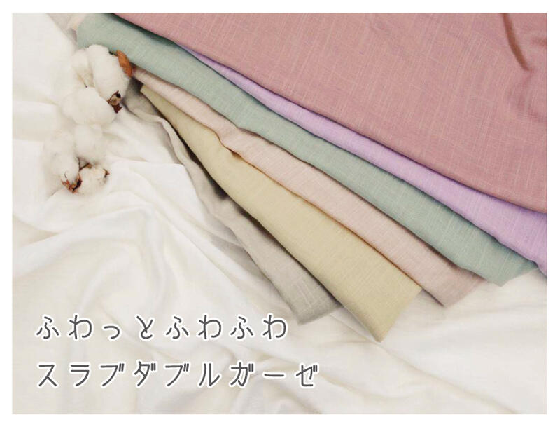 サンプルご希望の方はこちらカラーバリエーション豊富な綿100%無地のスラブダブルガーゼ生地。