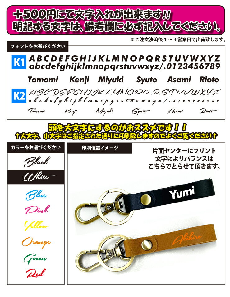 【名入れ可能】レザークラフト キーホルダー(全4色) ※名入れする場合は、ご希望の英語を備考欄にお書き下さい。