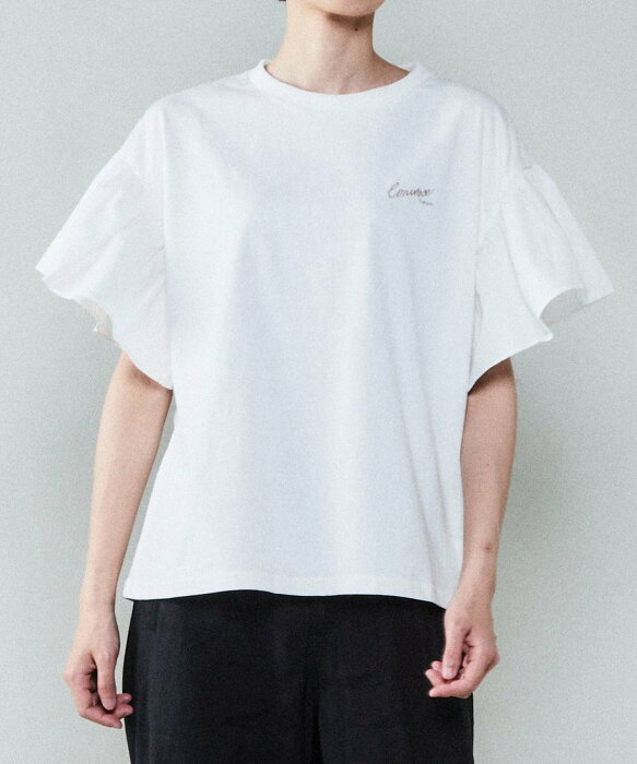 CONVERSE TOKYO(コンバーストウキョウ)スリーブドッキングTEE布帛のフレアスリーブが女性らしく、二の腕を細く見せてくれるカットソー。