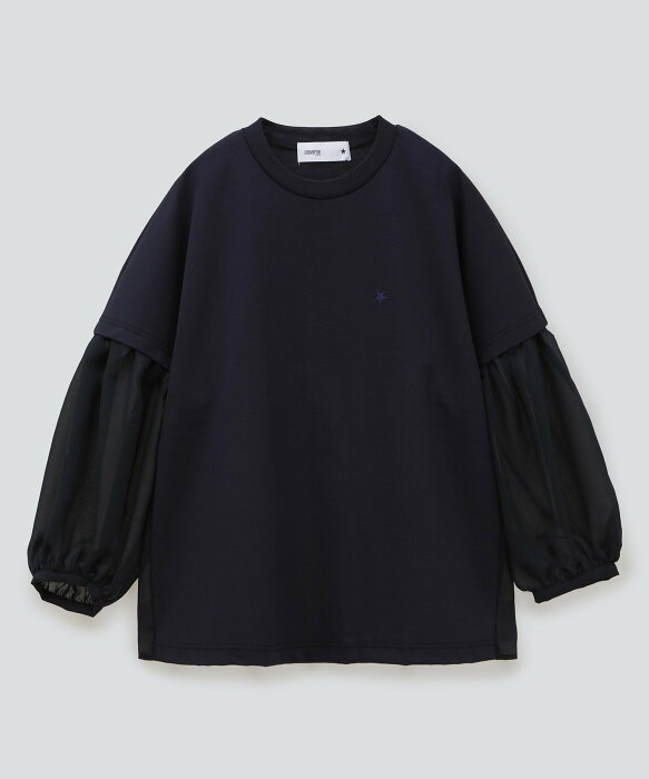CONVERSE TOKYO(コンバーストウキョウ)シアードッキングTシャツ袖と後身頃をシアー素材に切り替えたカットソー。