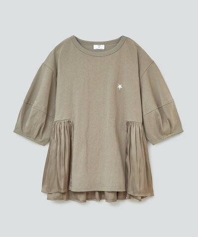 CONVERSE TOKYO(コンバーストウキョウ)ギャザープリーツドッキングTEEぱこっとした立体的なフォルムの袖と胸下から広がる割繊サテンのギャザーシルエットが、ありそうでなかったカットソー。