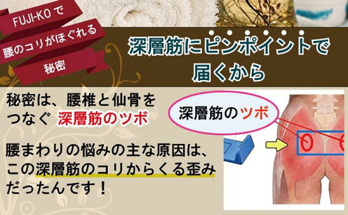 でもFUJI-KO(フジコ)なら、隠れたツボをしっかりと狙い撃ちすることができ、しかも 誰でも簡単に、おうちで好きな時に腰をほぐすことができます。