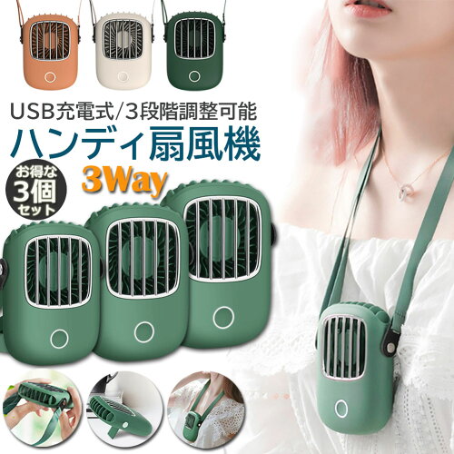 あす楽 即納 首掛け扇風機 携帯扇風機 3個セット ハンドルファン 卓上 スタンド機能 usb 充電式 1800mAh 6H長時間稼働 3段階風量調整 静音 小型 ミニファン 軽量 持ち運び 熱中症対策 ネッククーラー