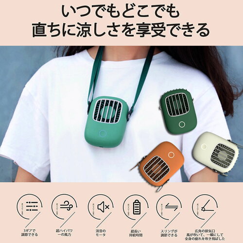 【1台3役】首掛け扇風機は調節可能ストラップが所属していて、簡単に首掛けて使用られ、また小型で手持ちしても使用できます。