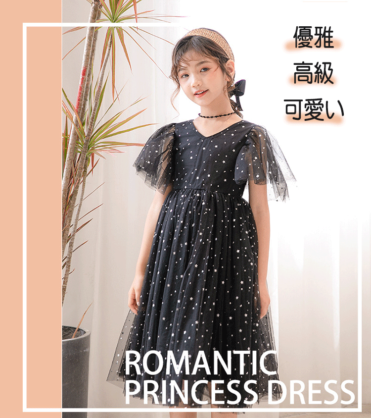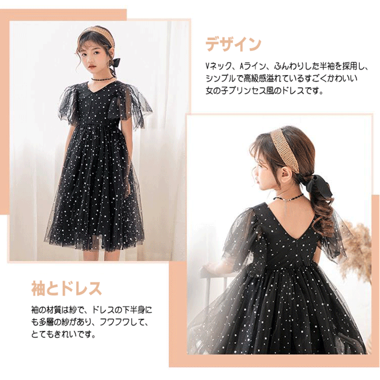 子供 キッズ ワンピース ドレス 女の子 ロングドレス プリンセス ガールズ 洋服 キッズワンピース キッズドレス チュール 可愛い 韓国風 星柄 スパンコール レース クリスマス セレモニー 半袖 夏 キッズファション110 120 130 140 150 160 170cm
