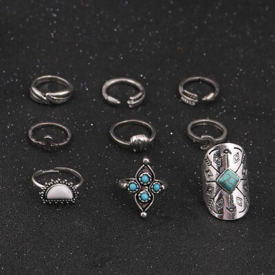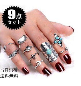 送料無料 買得く9点リングセット 指輪セット アンティーク調 リング 指輪 ペア オシャレ 欧米 海外 人気 レディース アクセサリー 花 フラワー ストーン 星 モチーフ フリーサイズ シルバー ジュエリー 312【RCP】