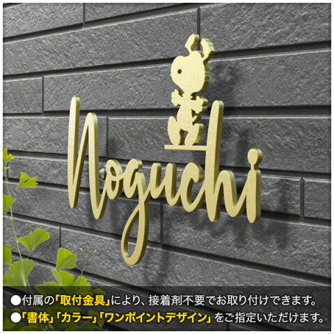 表札 スヌーピー 切り文字 アイアン 取り付け金具付き ピーナッツ(PEANUTS) 犬デザイン いぬ かわいい ゴールド ステンレス 筆記体 おしゃれ SPKMIR-GD-N2