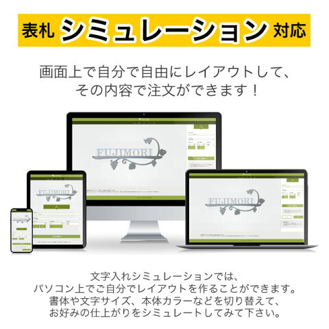 画面上で自分で自由にレイアウトして、その内容で注文ができます! 文字入れシミュレーションでは、パソコン上でご自分でレイアウトを作ることができます。