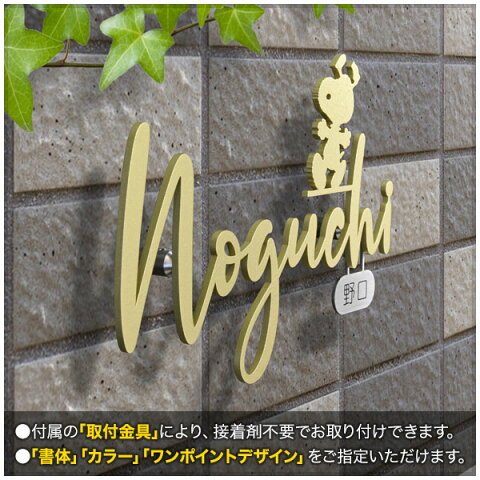 表札 スヌーピー 切り文字 アイアン 取り付け金具付き ピーナッツ(PEANUTS) 犬デザイン いぬ かわいい ゴールド ステンレス 漢字 筆記体 おしゃれ SPKMIR-GD-N2