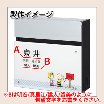 郵便ポスト 郵便受けスヌーピー フェイサス フラットタイプ SPNFS-B 名入れ有り 人気のフェイサスポストにスヌーピータイプが登場! 販売条件 ◆詳しくはこちらをご確認ください サイズ 全体サイズ:W390×H390×D145mm 投入口:W333×H23.5mm 重量:4.5kg 書体 52種類 仕様 壁付けポスト(前入れ前出し仕様)/ダイヤル錠搭載 材質 アルミ形材/アクリル板 セット内容 ■スヌーピー フェイサス フラットタイプ SPNFS-B 名入れ有り(文字色:ブラック) 備考・注意 ※希望指定文字を購入手続きのSTEP3にてご記入ください。