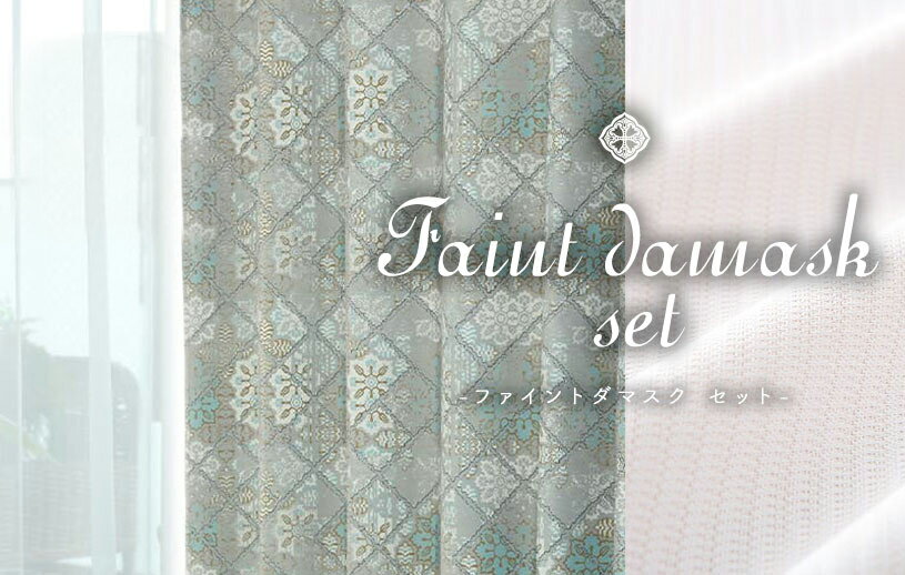 【¥13,100〜】 カーテン おしゃれ 4枚セット 洗濯可能 ミラー 遮熱 UVカット 保温 防虫 防ダニ 防炎 遮光3級 形状記憶 オーダー ロッカン モロッコ風 タッセル付 フック付 レース付 グレー/ランパス 〜ファイントダマスクセット 〜
