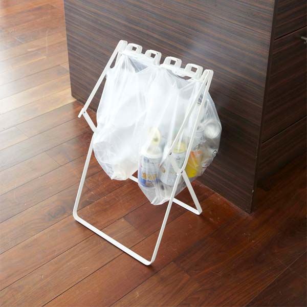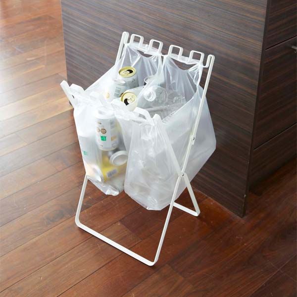 ○45Lゴミ袋とレジ袋を掛けられる開閉式ダストスタンド。