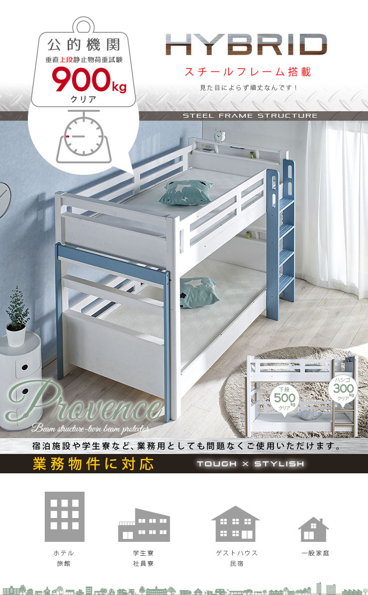 pt5倍+2%クーポン 20-21日★ 2段ベッド 耐荷重900kg Beamstructure 特許構造 安心安全の エコ塗装 LED照明付き 宮棚付き ロフトベッド プロヴァンスII 耐震構造 アウトレット二段ベッド 2段ベット二段ベット大人用 業務用 収納 頑丈 丈夫