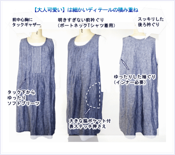 ・全体をしめすぎない風通しの良いデザインで、ゆったり着て頂けます。