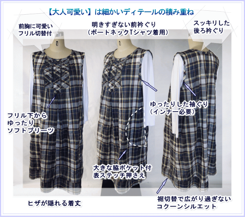 ・胸フリルが可愛い裾切替がスッキリした仕上がりになっています。