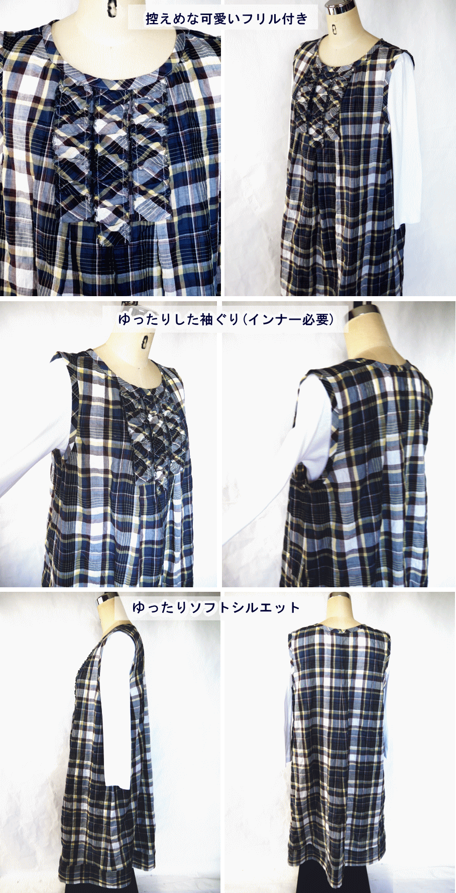 日本サイズの9号です 商品創りコンセプト 普段着もお洒落で楽しい毎日を イメージしてデザインをしています 大人可愛いアイテムを中心に カフェエプロン・エプロンドレスなど いろんなサイズ の方に 動きやすく、着易いデザインを フリーサイズで提案します ジャ ケット・ボトムなどに使われる素材を使い 上質で洗濯機洗いによるダメージの少ない縫製 丈夫な縫い目、裁ち切りを見せない丁寧な仕様 オリジナル・ハンドメイドの魅力 工場直接出荷だからできるサービス お直し、サイズオーダー詳細はコチラ・綿ストレッチ素材、マドラスチェックにストレッチ性を持たせた軽い素材です。