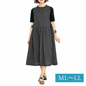 サイドボタンストライプワンピースの特徴 ゆったり重ねて楽しむ 綿麻混ストライプワンピース ※黒のインナーは商品に含まれません。