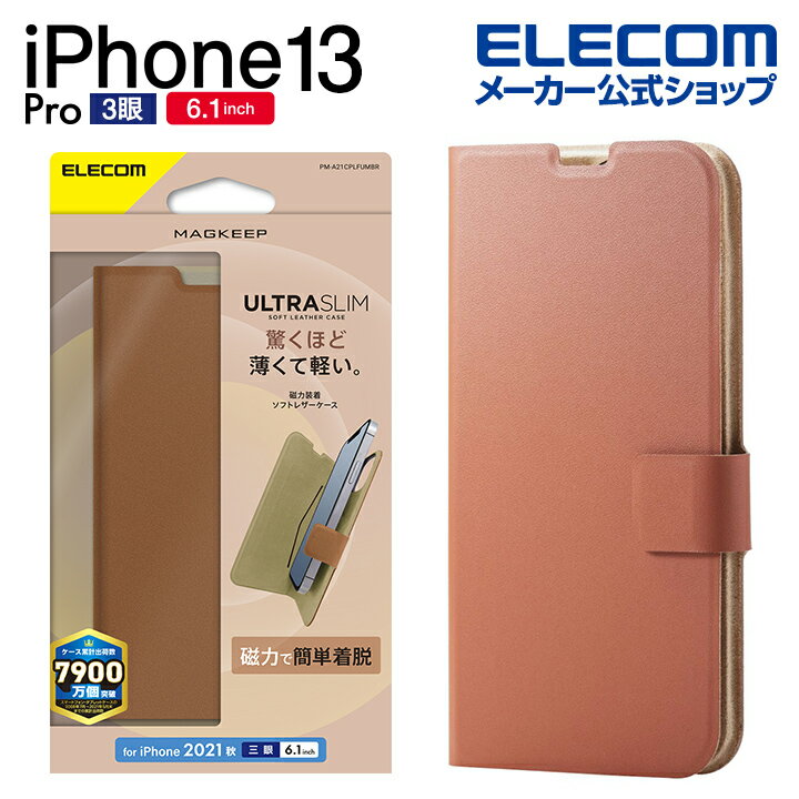 エレコム iPhone 13 Pro 6.1inch 3眼 用 ソフトレザー 着脱レザーフラップ 薄型 MAGKEEP 2021 アイフォン iphone13 6.1インチ 3眼 ソフトレザーフラップ ケース カバー 着脱可能 ブラウン PM-A21CPLFUMBR