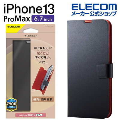 エレコム iPhone 13 Pro MAX 6.7inch 用 ソフトレザー 着脱レザーフラップ 薄型 MAGKEEP 2021 アイフォン iphone13 6.7インチ ソフトレザーフラップ ケース カバー 着脱可能 ブラック PM-A21DPLFUMBK