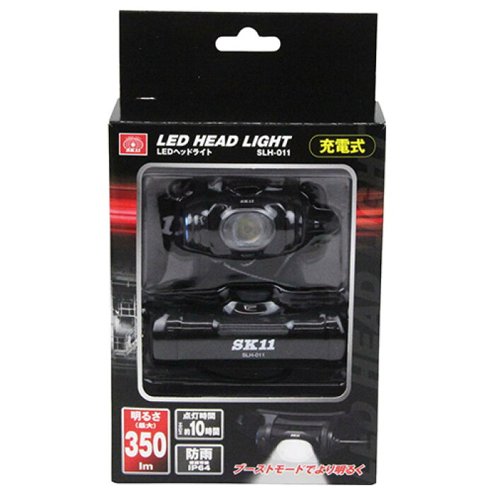 SK11 藤原産業 LED ヘッドライト 充電式 最大350lm SLH-011 作業灯 夜間の歩行 レジャー 夜釣り 登山 IP64 リチウムイオン蓄電池