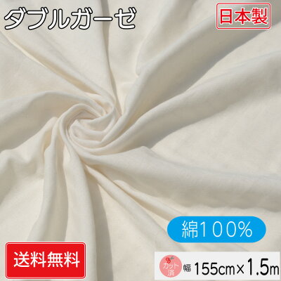 【28H限定♪5%OFFクーポンあり&P2倍☆39ショップ買いまわり8/19 20:00〜 8/23 1:59まで】【広幅155cm×1.5m】日本製 ダブルガーゼ 生地 生成 ナチュラル ハンドメイド Wガーゼ コットン 手作り 子供 マスク ハンカチ エチケット マスクゴム[品番HT-2502]