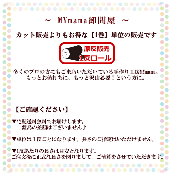 (my-mama@d5.dion.ne.jp と、 auc-my-mama@shop.rakuten.co.jp)【1】商品のカットに関しまして・生地、ブレード、ゴム等、長さを指定してのカットのご依頼はお受けできかねます。