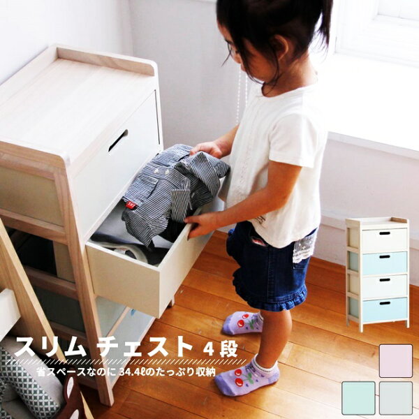 省スペースに収まるキッズスリムチェスト「esta」。