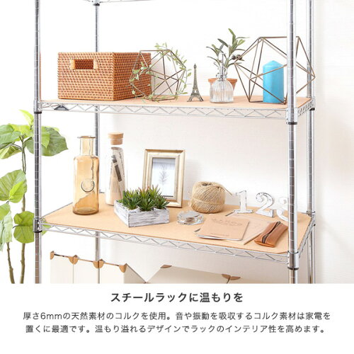 [共通] ルミナス コルクシート スチールラック 幅60 奥行35 パーツ 幅57.5×奥行32.5cm 商品仕様 商品シリーズ [共通] ルミナス コルクシート (棚サイズ 幅60×奥行35タイプ) 外形寸法 幅57.5×奥行32.5cm 厚さ0.4cm 備考 【ポール径19mm】幅59.5×奥行34.5cm棚対応 【ポール径25mm】幅61×奥行35.5cm棚対応 ※一点に重さが集中する、脚などが付いている重たい物を載せると破けてしまう場合がございますのでお避け下さい。