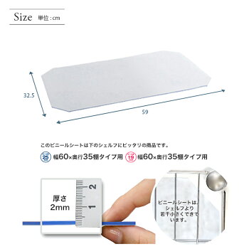 [共通] ルミナス ビニールシート スチールラック 幅60 奥行35 パーツ 幅59×奥行32.5cm 商品仕様 商品シリーズ [共通] ルミナス ビニールシート (棚サイズ 幅60×奥行35タイプ) 外形寸法 幅59×奥行32.5cm 厚さ0.2cm 備考 【ポール径19mm】幅59.5×奥行34.5cm棚対応 【ポール径25mm】幅61×奥行35.5cm棚対応 材質 PVC(塩化ビニール) ポール径 共通 型番 OPS-6035V JANコード 4997236002457 メーカー 株式会社ドウシシャ 使用上のご注意 当店で取り扱っております 「ドウシシャ製 ルミナススチールラックシリーズ」 につきましては 他メーカーのラック(メタル製ラック・メタルシェルフ等)には互換性はございません。